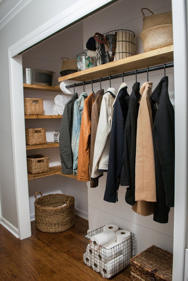 If you still can't make a decision on what style door would work best for your closet, try removing them altogether, like Elizabeth from Jonesville. You can always put the doors back on or change them at another time, after you've had a chance to really think about it. But you might be surprised how much you enjoy having a doorless closet. Although an open setup will force you to keep your wardrobe clean and organized, you'll always be able to see exactly what's in there. Add woven baskets to help corral clutter and keep the tiny space looking stylishly pristine.