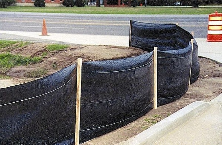 Site preparation. Typically, most local municipalities will require that you erect silt fencing around the perimeter of your grading operation. This is normally a 3'-0" high fence built with small wooden posts or metal stakes. A silt fence fabric, such as Geotex, is applied to one side of the fence. Leave some slack fabric at the bottom of the fence, pull the slack into the grading area and build a small berm of dirt over it.