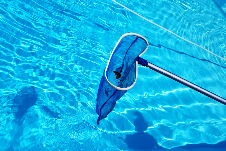 Use a pool skimmer to remove large debris from the pool's water. This will help prevent the pool filter from clogging. Skim any floating items from the top of the water surface. Then stir up the water and skim as much of the leaves and other larger debris as you can from the bottom of the pool.