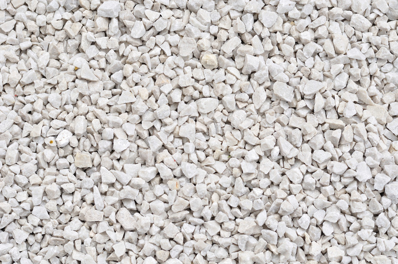 Pea gravel indicates size rather than type of rock. It's typically sold in 3/8- and 5/8-inch sizes and in a mixture of brown, gray and white earth tones. It provides a textural contrast, as well as a comfortable surface for walking, and is easily cleaned when placed in dog kennels. The small pebble size locks flagstones in position, filling small cracks and irregular shapes. The size of pea gravel you choose has little effect on the quantity you need when buying by weight.