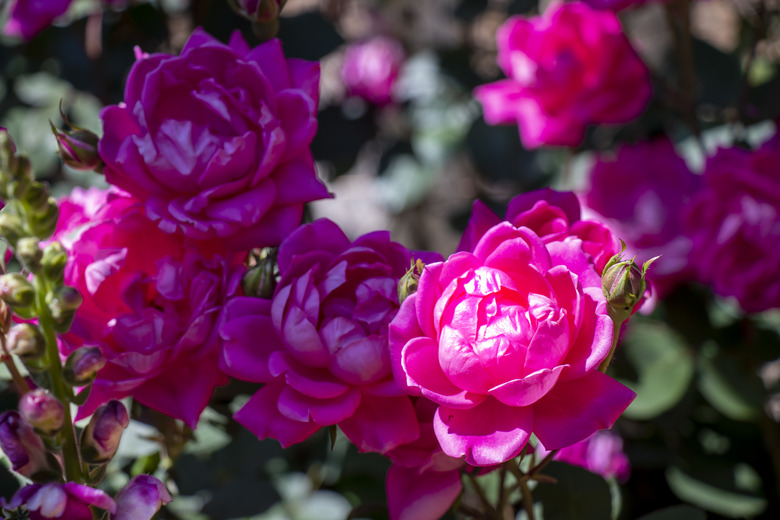 The first step in promoting healthy growth leading to a low-maintenance shrub is planting the rose in its preferred conditions. Fortunately, Knock Out roses aren't plagued by most diseases or pests, so you can knock that off the maintenance list. Consider the rose's mature size and select a site where it has room to grow and receives good air circulation. You'll want a site that gets six to eight hours of daily sun with well-draining soil that has a pH between 6.0 and 6.5. Avoid putting undue stress on the rose by not planting it any deeper than it was growing in its original pot.