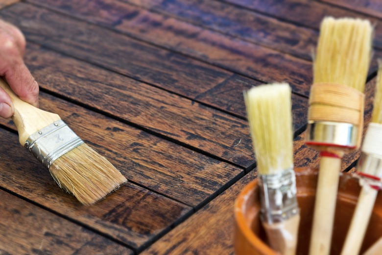 Acrylic latex paint is an acrylic finish, but it won't soften when you spray lacquer on it. Instead, the lacquer remains on the paint as a surface coating. It bonds well and although lacquer isn't as flexible as acrylic-fortified latex, it doesn't crack except under extreme fluctuations in temperature or humidity. Nitrocellulose lacquer has a tendency to yellow with age, though, and it may dull the color of the paint.