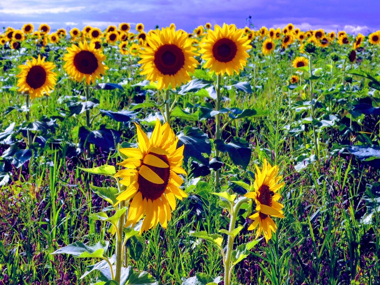 Sunflowers aren't as attractive to thrips, spider mites and other microscopic crawlies as other plants, probably because they grow so tall (6 feet or more) and so quickly, which means that the insects damaging your plants are usually big enough to spot, making management easier. Not all insects you find on sunflowers are harmful, and some, like ladybugs, are beneficial, so you don't need to freak out every time you see a bug. However, stunted growth, decimated foliage and wilting coupled with insect sightings should call you to action.