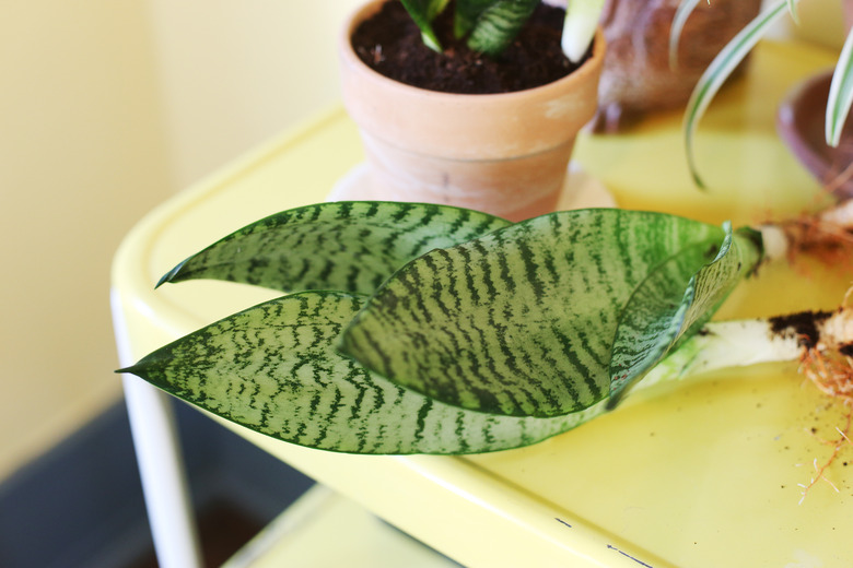 When moving a mother-in-law's tongue plant into a new pot, loosen any roots that have become pot-bound and wrap around the rest of the root ball. Set the plant in the new pot at the same level it was growing in the old pot, and fill in with new potting mix. If you trim any roots or use pruning shears to remove dead leaves, disinfect the shears by soaking them in 1 part bleach to 3 parts water for five minutes. Rinse the shears with clean water and air-dry before use.