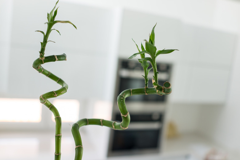 You can also use annealed copper wire to curl a young, flexible lucky bamboo plant via a method that's similar to wiring bonsai. Start at the base of the plant, keeping the coils of wire around the stem fairly close together, not too snug and spiraling upward. Once you've reached the top, you can gently bend or twist a segment of the plant into a spiral or curl that's held in place by the wire.