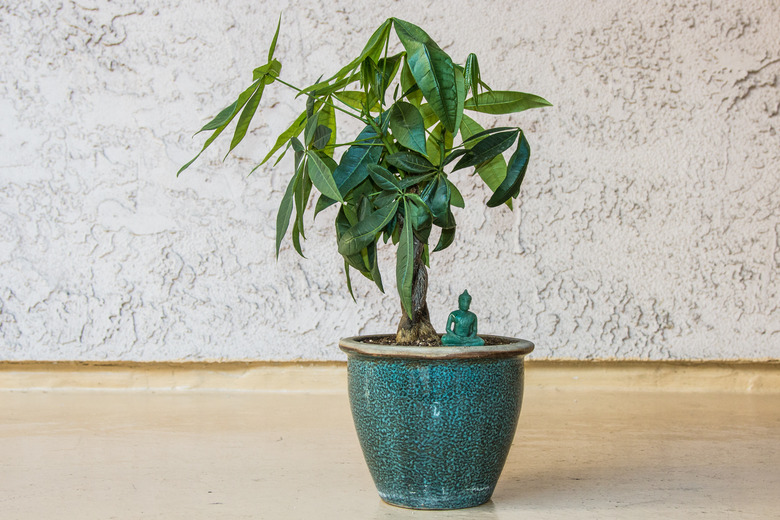 The money tree plant (Pachira aquatica, USDA zones 10-12), also known as Malabar chestnut, is an easy-to-grow plant commonly used in feng shui to produce positive vibrations and attract prosperity to the owner. It's native to the swamps of South America and doesn't tolerate temperatures below 28 degrees Fahrenheit, making it a common indoor plant. In its native habitat, money trees can grow as high as 30 feet with an equal canopy spread. It produces small brown nuts that have a flavor similar to peanuts. The money tree also has no major susceptibility to pests or diseases, which adds to its appeal.