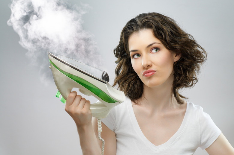 If you want to use your steam iron as a dry iron, simply empty the water from the iron or set the iron to its dry heat setting. Many people use a steam iron to press fabrics because steam heat changes the shape of the fabric threads faster than dry heat. Some fabrics, however, are made from fibers that break down when exposed to steam. Others may transfer some of their dye and lose color. In addition, iron-on transfers and patches require a dry iron. Fortunately, a steam iron can easily pull double duty and be used dry.