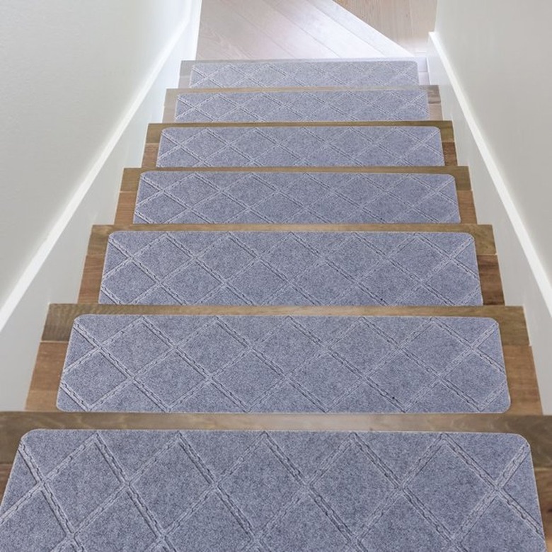 Runner rugs for stairs can also provide a bit of softness, dampen sound, and you don't have to measure and cut each piece. As a bonus, it gives a consistent look to the stairs — and stair rods fit snugly along the base of each step to help keep it in place over a long period of time.