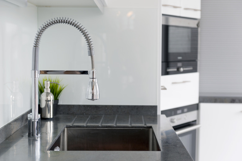 Nearly all kitchen sink faucets have an aerator — the round bit attached at the very end of the faucet. The first step is to remove that aerator (it screws on and off) and determine whether or not the faucet will need an adapter. The filter might fit the faucet's current size; if not, the Pur kit contains several threaded adapters to ensure the filter and faucet can work together.