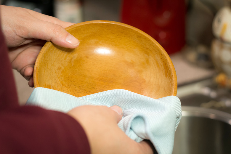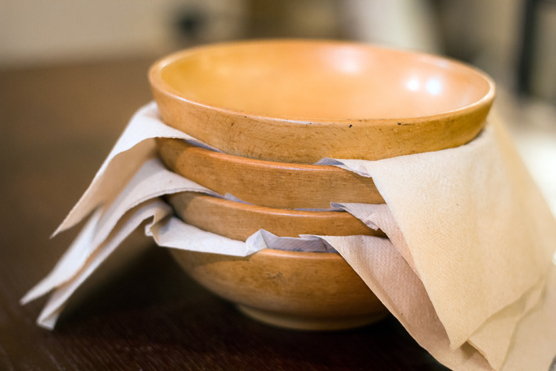 Like wood, bamboo bowls can dry out and eventually crack. To help prevent over-drying, periodically treat the bowls with a light coating of oil. A food-grade mineral oil, or mineral oil mixed with beeswax, are the most common options. If you want to avoid petroleum products, any shelf-stable, food-grade oil will work. It's best to avoid nut oils as they can easily go rancid. Use a soft cloth to apply a light coat of oil to the dry bowl, allow it to soak in for an hour or even overnight; then wipe off the excess.
