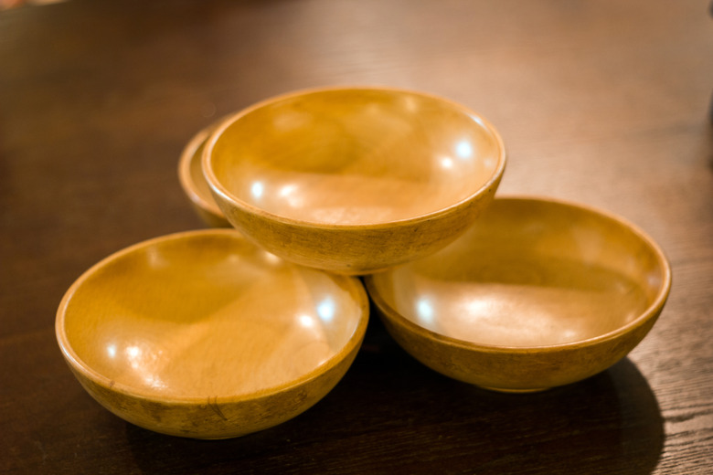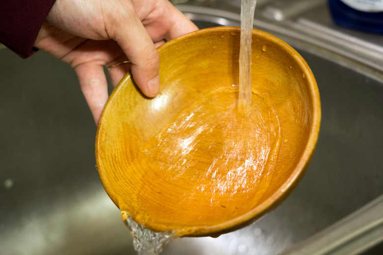 If a bowl becomes sticky, it's usually a buildup of excess vegetable oil. Use lemon juice and a gentle brush to scrub off the sticky residue; then rinse and dry the bowl and treat it with mineral oil. Lemon juice can also remove any lingering food odors that have seeped into the bowls and can help reduce stains. Keeping bowls well treated with oil is the best way to prevent stains, but natural bamboo bowls will darken over time. The variations in color add character to the bamboo's natural beauty.