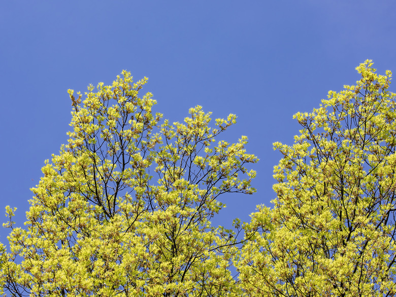 Observe maple trees for the point when flowering occurs. You can prevent seed formation by preventing pollinated flowers from developing.