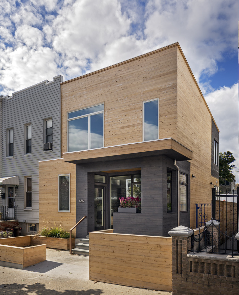 What Brooklyn row houses offer in space, they often lack in light. But when a couple with two young children found a property in the borough's Windsor Terrace neighborhood, they imagined that a renovation would allow them to have both. The pair hired local firm Barker Freeman Design Office Architects with this goal in mind, and asked for the impending changes to take advantage of the fact that the home was only attached to neighboring buildings on one side. "They were interested in large expanses of glass, using natural materials such as wood and cement tile," said principal Alexandra Barker. While an existing front extension needed to be maintained, the rest of the site was fair game. So, the team started transforming the exterior with two-tone cedar paneling and new windows, while creating a covered porch and mudroom in that standing entryway. Then, they expanded the kitchen and added a bedroom above it. Natural sunlight was now streaming through the structure, but the interior finishes took it a step further. White and soft gray shades heighten the effect of the rays from the floor-to-ceiling glass that connects the back porch to the kitchen, and colorful tiles lets the brightness feel even more cheerful. The peaceful surroundings make the modern space feel welcoming and kid-friendly, which is exactly what this couple envisioned when the alterations began.