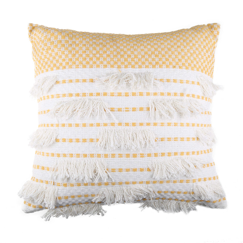 This woven, fringe chennai throw pillow from Bed Bath and Beyond ( $29.99 ) will add a dose of sunshine to the more neutral pillows on your couch. And since the yellow on this pillow is on the muted side of the spectrum, you'll be able to keep it on display all year long.