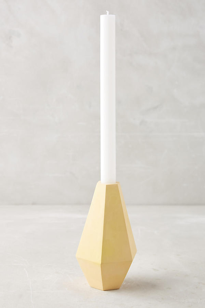 Group a few of these candle holders from Anthropologie ( $36 ) on your mantel to add height and visual interest to that space. A few succulents would work well with the shape and shade of this particular yellow item as well.