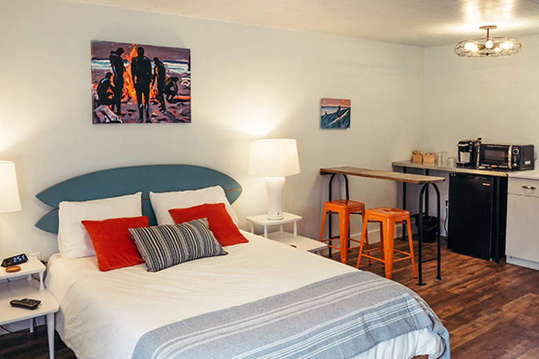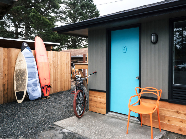 Avid surfer Johannes Ariens felt pulled to the rugged coastline of Westport, Washington, but he loves more than a perfect wave: he's into beautiful design, too. So when a tired motel from the 1960s washed up in the area, he bought it last fall with the surf culture of Montauk and Tofino in mind. Ariens wanted a place where fish out of water — from fellow surfers to commercial fishermen — could intertwine with vagabonding visitors and local loggers at a hideaway that comes across as an adult summer camp. "We completely gutted the place," he noted, and he raised more than $30,000 in a Kickstarter campaign to outfit the renovation's campsites and 40 rooms with a bright, fun-loving aesthetic. Now, the Loge at the Sands is a simple getaway with some seriously cool perks: surfers can come for the currents but stay for fire pits, a performance stage, and sleeping quarters that are as outdoorsy or cozy as they please. And just because the hotel's sensibilities seem very of-the-moment doesn't mean that all of the original style is gone. Ariens wanted to hold on to the past where he could, and the layout of the locale is still very much a throwback to its roots. "We're running with the midcentury vibe, and that's really fortunate because that's what the property is," he said.