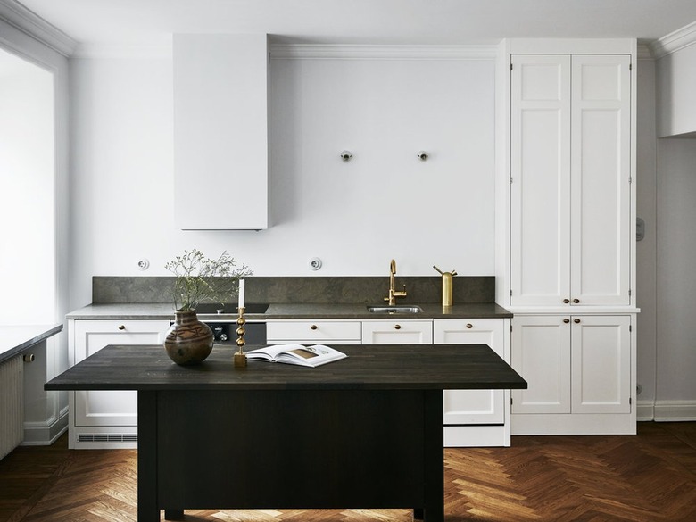 As with nearly all aesthetic considerations when you're remodeling, much depends on the scope of the job. If the flooring is only being laid in a smaller room adjoining a large run of open space or a hallway that has a different look, then the best look, for continuity's sake, is to separate the room from the hall with a threshold, and continue with the courses perpendicular to the direction of entry. That being said, if the room is particularly long in one direction, but not the other, then the courses usually look best going lengthwise with the room to avoid the pattern looking too cut up, or busy. In cases of whole-level flooring jobs, it's customary to run the flooring away from the main entryway — in the direction of travel — then spill into each adjoining room and corridor accordingly. This tends to capture the eye and pull the attention immediately out into the open space of the home, making the area look much larger and more open.