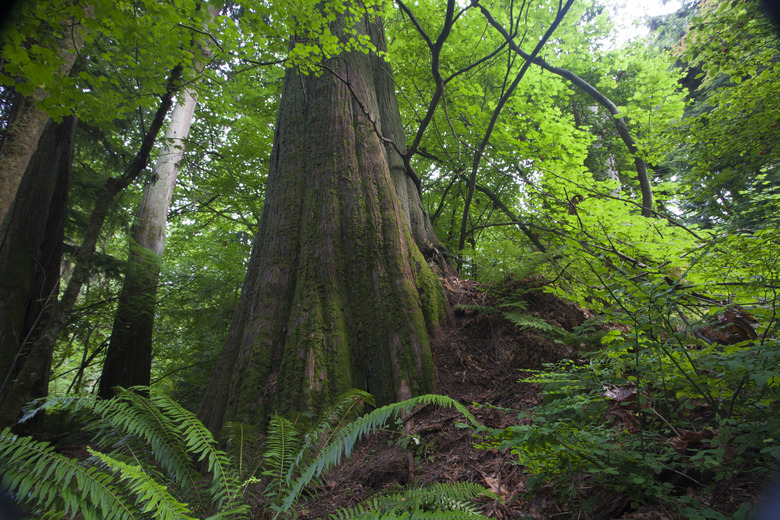 Trees called western red cedar are in the Thuja family, also known as arborvitae. If "arborvitae" makes you think of imported hedge shrubs, think again. The western red cedar (Thuja occidentalis) is native to the Pacific Northwest and can grow to over 200 feet tall, with trunks over 10 feet in diameter. These trees, with their flattened scale-like foliage, can live for over a thousand years. Western cedar can grow in dense shade and their thick foliage creates dense shade as well.