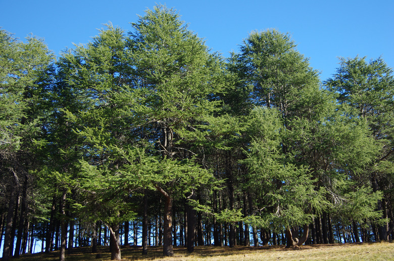 True cedars are members of the pine family and have pine-type needles. Several types of true cedars grow in the United States. None are native to this country but rather come from the Middle and Far East. All true cedars have stiff branches and long evergreen needles (1 and 2 inches), often a blue-green color. The cones are large and shaped like barrels, sitting upright on the branches. Three true cedars growing in the Pacific Northwest are: