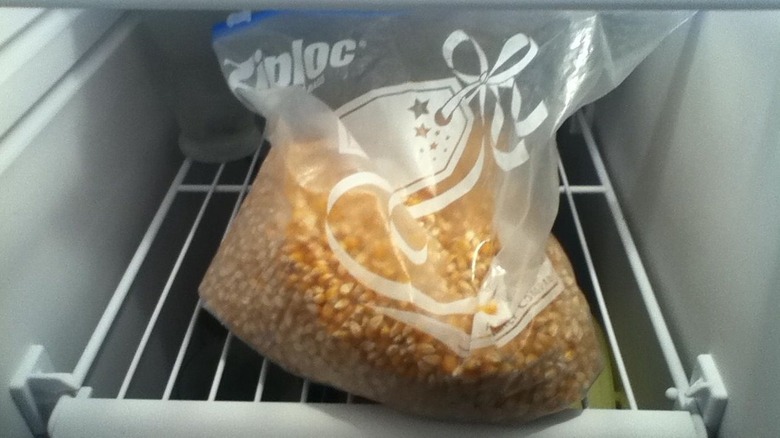 One of the first things every cook learns in Popcorn 101 is the reason popcorn pops. Each popcorn kernel has a bead of moisture inside that turns to steam and breaks the outer shell with a loud pop when the required temperature is maintained for a long enough period. When popcorn sits for years in your cupboard, it goes stale by drying out and losing this moisture, and when this happens, you can't get satisfying results, even when cooking it on the stove.