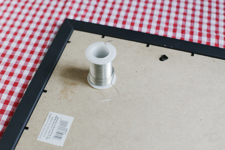 Measure and cut a piece of picture frame wire approximately 1 1/2 times the width of the frame.