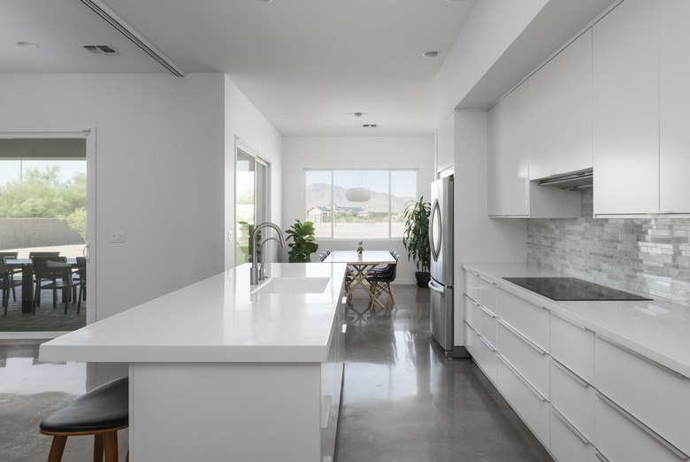 Rust-Oleum has a diverse line of paint kits that contain all you need to transform the laminate surface into a gleaming expanse of granite-like style. Painting laminate to look like granite requires materials like primer, sponges, paints and videos about how to best apply the tricolor paint. A paint kit can cut down on trips to the paint store to buy more or better products.