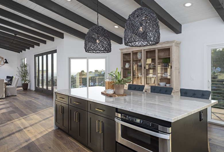 Use a feather or the edge of a thin paint brush to run lines over the countertop. They shouldn't be exactly even — spacing them about 3 to 6 inches apart will offer that luxurious, natural stone look. Finally, HGTV recommends that you seal the new granite finish with a coat or two of clear acrylic.