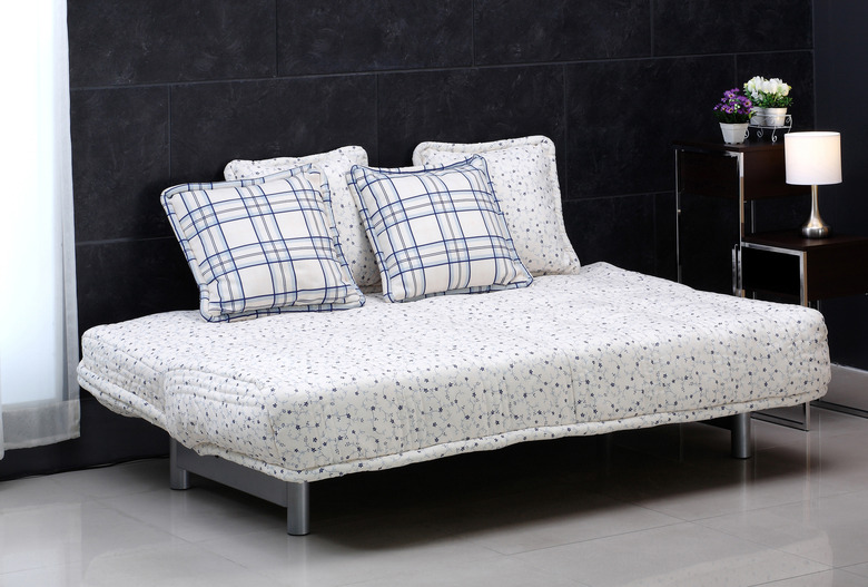 Make your own fun, funky base for a mattress out of legally purchased plastic milk crates. The typical 16-quart milk crate holds 35 pounds, so a series of them makes a great sturdy bed base. Position crates upside down, or use them sideways with the openings facing out to add storage space for slippers or electronics. Connect the crates together with zip ties, using as many crates as needed to make a solid base structure for your mattress size. Cut a piece of plywood to fit the top, then set the mattress atop the plywood. Be sure to wear safety goggles while cutting the plywood. Secure the plywood to the crates with small bolts and large washers secured through the crate up into the plywood. The washer helps stop the bolt from pulling through the wood. A milk crate bed base is a great option for a tight space or an upstairs apartment where fitting a box spring up a narrow stairwell is difficult.