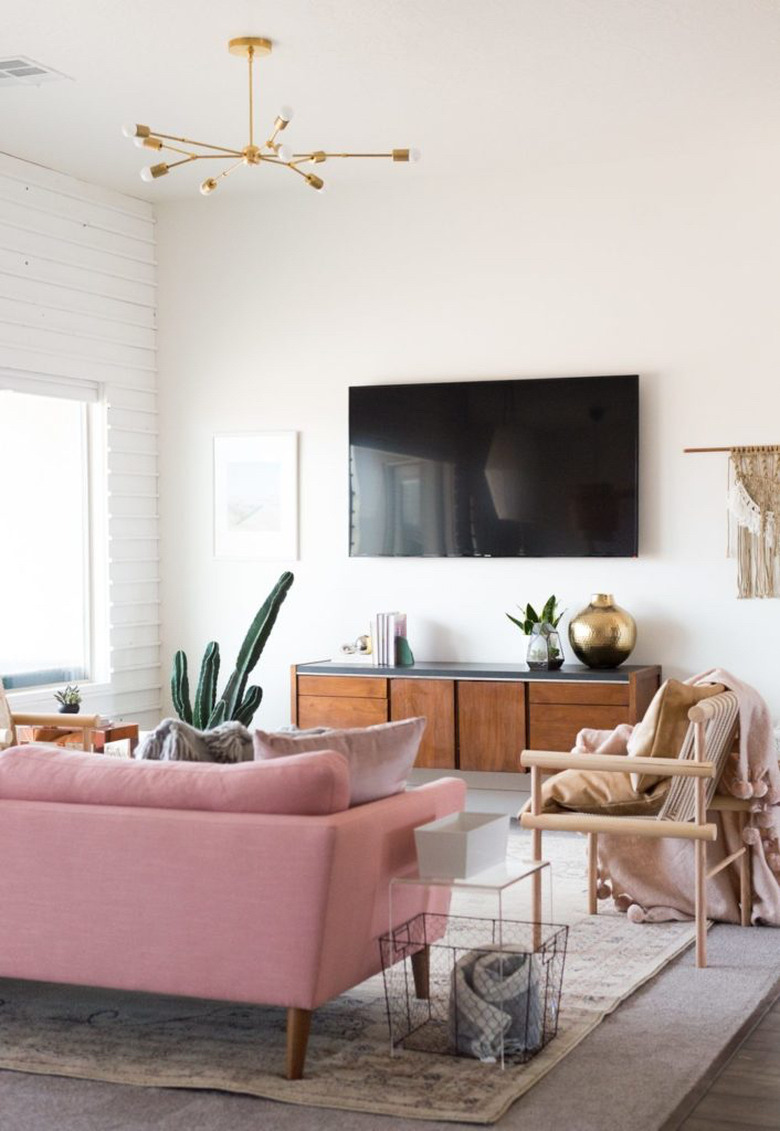 If you have a large area rug that skirts the outer perimeter of your room or long draperies on the walls, you might be able to use them to creatively hide the wires for your electrical items. Simply tuck the wires behind the long draperies or under the edge of your rug. This works well if your rug hugs the walls of your room and doesn't get a lot of foot traffic — as repeatedly walking on wires under a rug (no matter how thin) could cause the wires to fray and become a fire hazard.