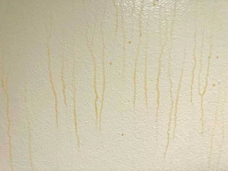 Heat and moisture can also lead to bubbling. If you painted a wall in direct sunlight, then the wall may have been too warm for the paint to adhere properly. Damp basements or walls where water has traveled from the interior to the exterior wall may result in the paint being pushed off the surface and bubbling. Additionally, latex paint that is exposed to humidity, moisture, rain or even dew shortly after it has dried may bubble. And poor ventilation, which is common in kitchens and bathrooms, may also cause latex paint to blister.