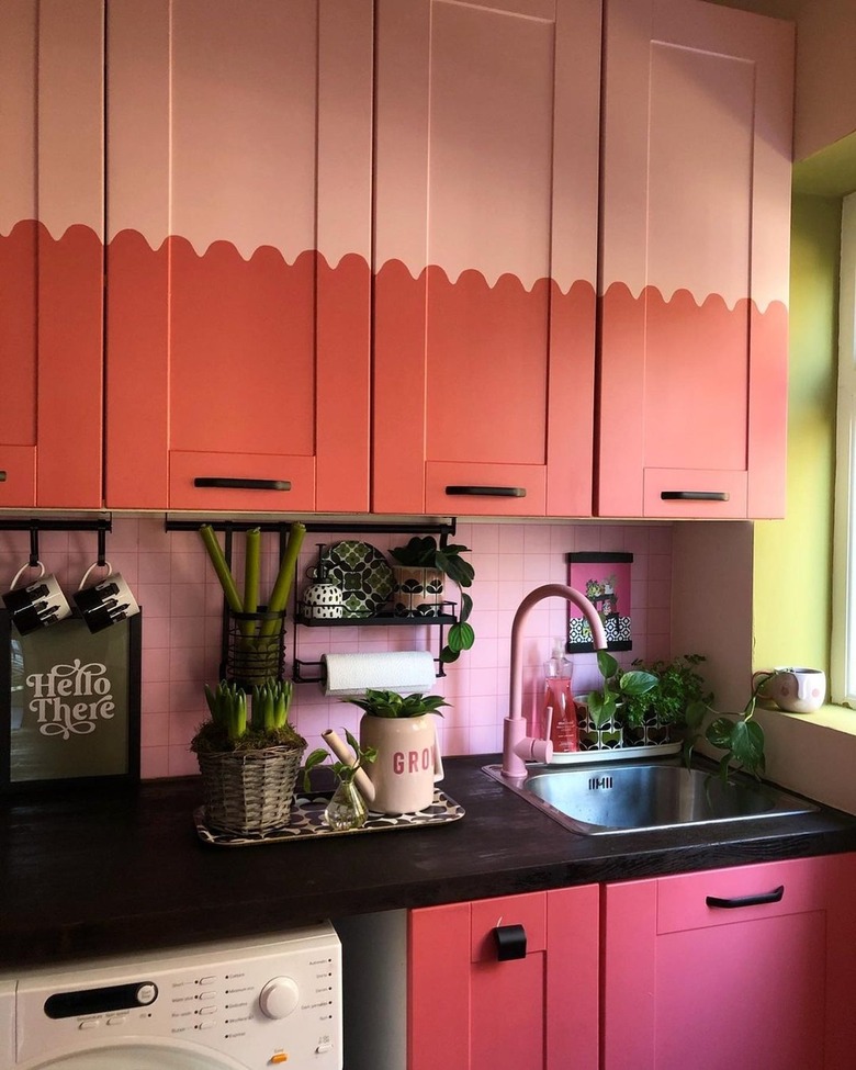 Paint a room in two distinct colors to disguise poor proportions or flaws, coordinate wall colors and furnishings or highlight architectural detail. In a room that lacks definition, a contrasting accent wall supplies focus. Two colors are lively in a room that threatens to come off as staid. A two-tone paint job can be as subtle as shades of gray or as vibrant as complements — such as teal paint on the patio-access wall of a pale apricot kitchen.