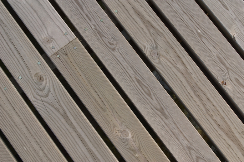 Oxalic acid, a common wood deck cleaner, is sometimes referred to as a wood brightener or whitener, as it can lighten the color of the wood. Don't use oxalic acid, therefore, if you want to preserve the darkness of your wood. It is effective in removing fungus or tannin stains. To use the acid, mix with water according to the manufacturer's directions. Apply it to the wood and let it sit for several minutes before scrubbing away the black spots. Rinse the deck when the stains are gone.