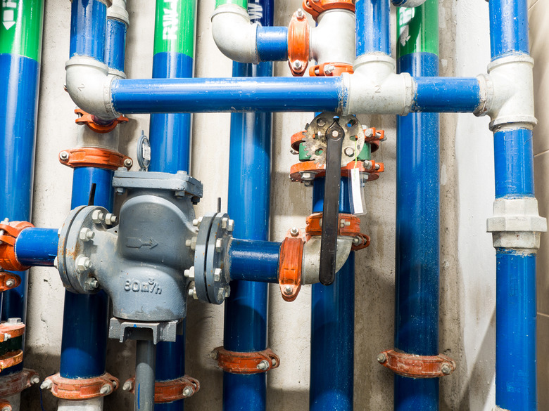 Galvanized pipes were once common in residential plumbing systems, but pipes made from other materials are now more popular, including copper and plastic. The white PVC pipes you see in outdoor plumbing systems are easy to find and to work with, but they aren't suitable for use with hot water, so when replacing galvanized pipes indoors, the plumbing code requires the use of CPVC instead of PVC pipes.