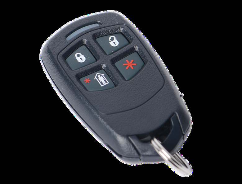 For example, pressing both buttons on the upper right and upper left simultaneously might send out a silent burglary alarm. Pressing the upper left and lower left buttons simultaneously might set off your fire alarm. You'll get to devise how your key fob works so that only you know how to access and set off your alarms. A list of actions you could choose to program into your fob includes: