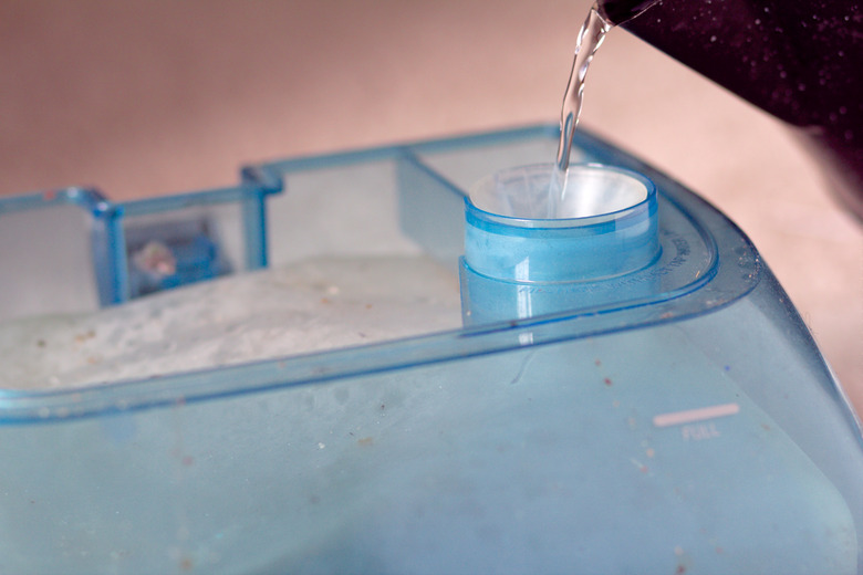 Bissell carpet cleaner instructions are very easy to follow. First, you'll need to prep the appliance. Most Bissell steam cleaners have two tanks that are easy to extract from the appliance and fill with liquids right from your sink. Remove the water tank from the upright cleaner by lowering the machine's handle until it is parallel to the ground, then lifting the tank out by its handle. Take that tank to the sink and fill it with clean water. Then, put the tank back in place.
