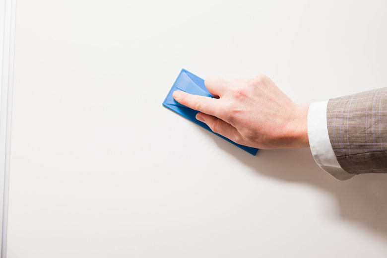Remove residual chalk ink by rubbing the stained areas with a melamine foam eraser. Wet a corner of the eraser, wringing out excess water, and then gently rub the chalk ink residue. Do not apply firm pressure or it may remove some of the chalkboard paint. Allow the area to dry completely.