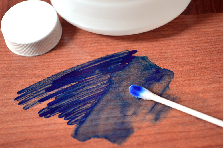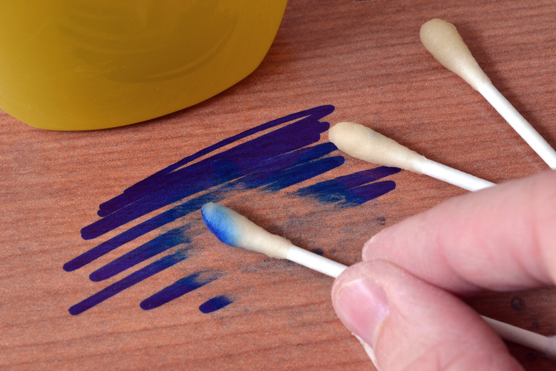 Rubbing alcohol removes permanent inks from a multitude of surfaces. Apply a small amount to a cotton swab or cotton ball; then rub the wet cotton over ink from one end of the mark to the other, rather than wiping across the mark. Rotate to a fresh area of the cotton as it absorbs the ink to prevent spreading it around. Wipe the area with a damp white cloth afterwards; then pat dry with a fresh white cloth. If the alcohol does not remove the ink entirely, use acetone or nail polish remover as a last resort, applying it with a cotton swab or cotton ball. Open windows or turn on a ceiling fan to avoid breathing in the fumes. Wipe the area with a fresh white damp cloth afterwards.