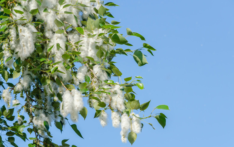 The white poplar is the ultimate survivor tree and very difficult to dislodge once established. An identifying feature on white poplars (Populus alba), a tough-as-nails garden tree that's a perennial in U.S. Department of Agriculture plant hardiness zones 3 through 9, is the five-lobed poplar leaf with a shiny, dark green top and a bright white bottom coming from a coating of hairs. The bark on these trees typically appears as a gray or white color and shows diamond-shaped blotches that appear darker.