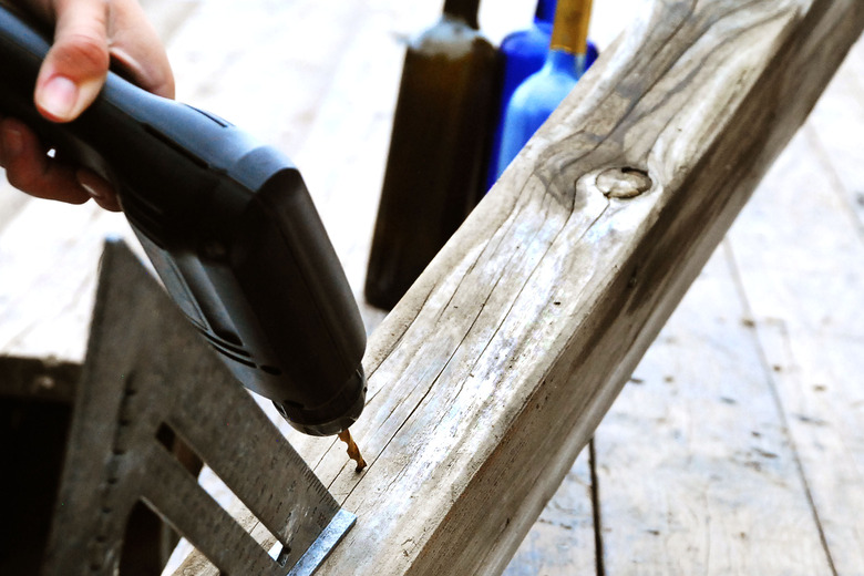Drill holes 2 1/2 inches deep along the sides of the post, at 45-degree angles. Space each hole 8 to 10 inches apart. Do not make the holes even and symmetrical; drill them randomly.