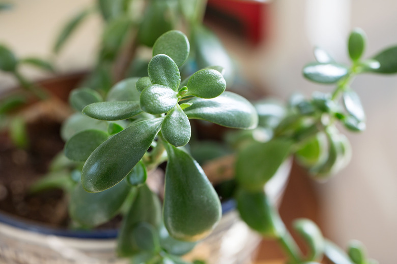 Repotting jade plants gives the root ball a little extra space to grow and thrive. Depending on species, evergreen jade plants (Crassula spp.) grow outdoors year-round in U.S. Department of Agriculture plant hardiness zones 9 through 12, but you can grow them as indoor plants anywhere. Jade plants can go years without repotting. Move a jade plant to a new container only if the plant becomes top-heavy or begins to lift out of its old pot.