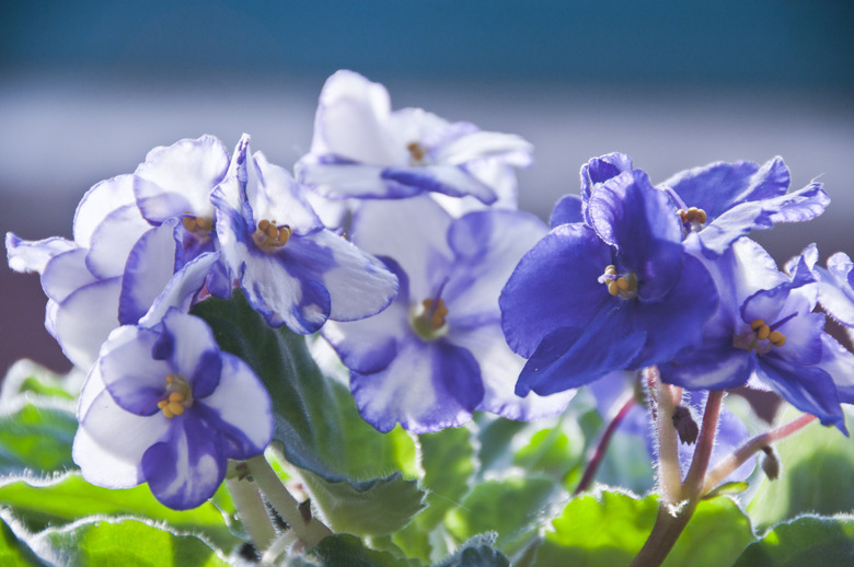 A compact plant with a big impact, African violet satisfies a plant lover's desire to grow without requiring extensive care. Although they are hardy outdoors only in U.S. Department of Agriculture zones 11 and 12, African violets are grown almost entirely as houseplants. A mature standard plant typically measures 8 to 16 inches in diameter, although there are other sizes and forms, including miniature (6 to 8 inches or less), trailing, and large (larger than 16 inches in diameter) selections. With green (or variegated), thick, hairy leaves and single or double star-shaped blossoms of white, pink, purple or blue, the African violet makes a lush, tropical impression in an environment that might be anything but so.