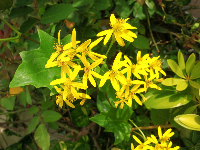 German ivy or Cape ivy (Delairea odorata, formerly Senecio mikanioides) is neither a true ivy nor is it from Germany. Instead, it originates from South Africa and merely mimics the ivies in the Hedera genus with its lobed leaves and vining growth habit. German ivy is not fussy when it comes to growing conditions. In fact, its adaptability and aggressive growth make it an invasive species.