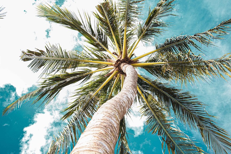 Evoking images of tropical paradises, many types of palm trees (family Arecaceae) grow along coastlines, while others grace inland landscapes. The diversity among palm species includes towering giants that bear fruit to compact bush types that are perfect for smaller landscapes. Regardless of its species, a palm tree has unique botanical parts that differ from most conventional-looking broadleaf and coniferous trees, which include the following: