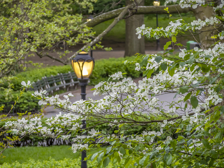 Some 40 different species are found in the Cornus genus, some shrubs and others trees. The more common dogwood trees include the kousa dogwood (Cornus kousa) with yellow-green spring flowers and the Pacific dogwood (Cornus nuttallii) with large, white spring flowers. All of these trees bloom in March and April across the United States, although the exact flowering period may vary geographically.