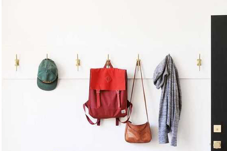 Even a few inches of wall space is enough to give yourself a place to hang your bag and scarf at the end of a long day. This look from the blog The DIY Playbook starts with a classic board and batten effect that adds dimension to the small wall. A few metal hooks in a black hue stand out, and transform a few feet of space into the most efficient area of the house.