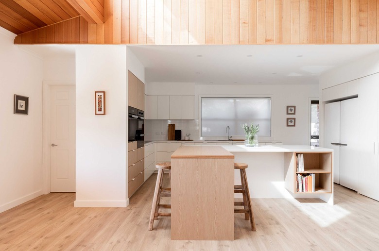 While the architects worked within the original home's framework, the transformation was anything but simple. The team removed walls, ripped out flooring, and restructured rooms, creating better-defined spaces and new, shared areas, including a breakfast nook. Replacing the dark slate floors with timber opened the space up and set the tone for a neutral palette throughout. The result is a chic, livable home that perfectly sets the stage for a relaxing retirement.
