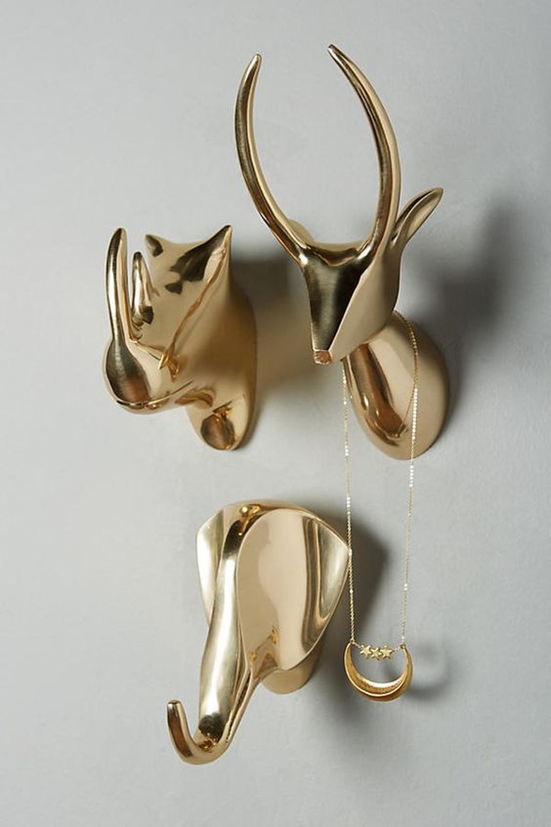 Not everything in the nursery needs to come from the baby section of the store. These Gleaming Safari Busts from Anthropologie ( $58 ), are not only a lovely decorative accent for the room, but they also provide a place to hang bathrobes, bags and even a special outfit without taking up too much wall space.