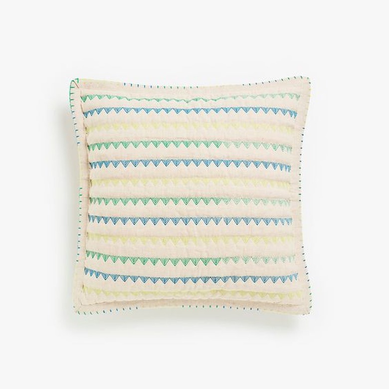 Add color to the nursery without going overboard by incorporating it through small accessories like this Multicolored Embroidered Cushion Cover from Zara Home ( $29.90 ). The subtle tri-colored triangular pattern will add just the right punch of color without making you feel like you need to redecorate the whole room around it.