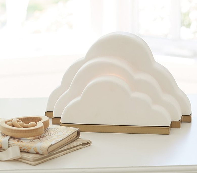 Add a bit of whimsy to the nursery with the Glowing Cloud Lamp from Pottery Barn ( $79 ). The dreamy ceramic lamp makes a great solution to the standard night light and is a fun piece that your child will love for years to come.