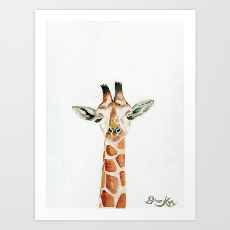 Add this adorably sweet What Does the Giraffe Dream print from Society6 ( staring at $17.24 ) to a blank wall in the nursery to brighten things up, and tie the whole room together. Whether you choose to display a single statement print or decide to go with a small gallery wall instead, this piece of art will definitely be the star.